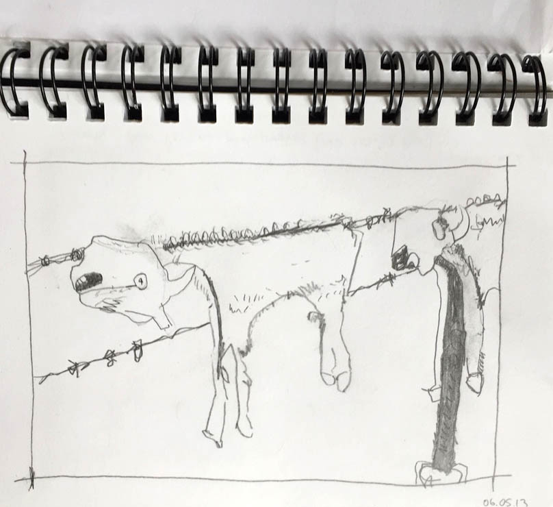 Dead goat hanging on a fence - the last expression