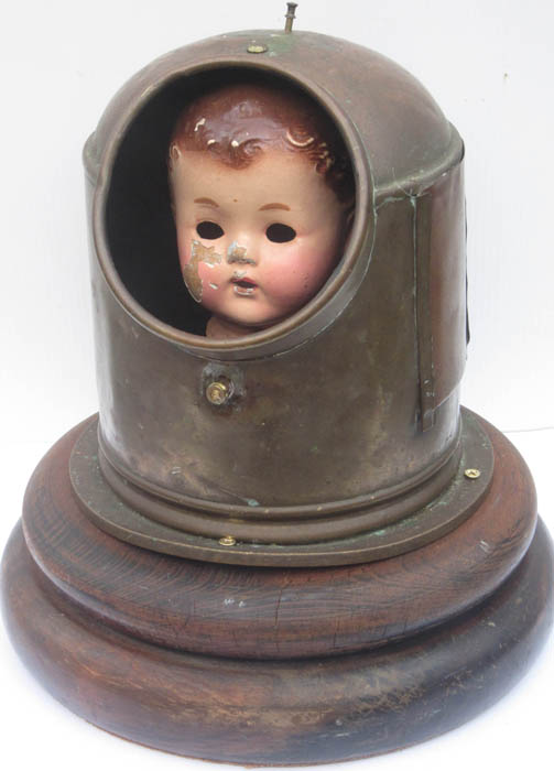 doll's head in copper and brass nautical casing.