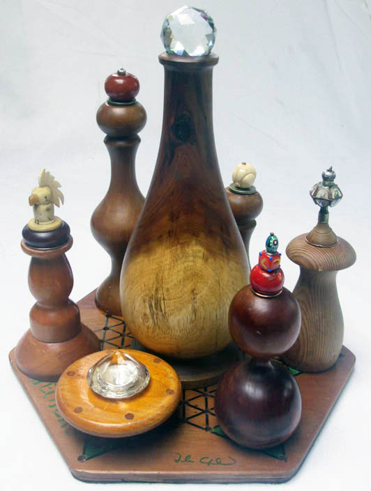 A bone and ivory parrot on a stone jar ... it used to hold a delicate sponge for cleaning gramophone records.