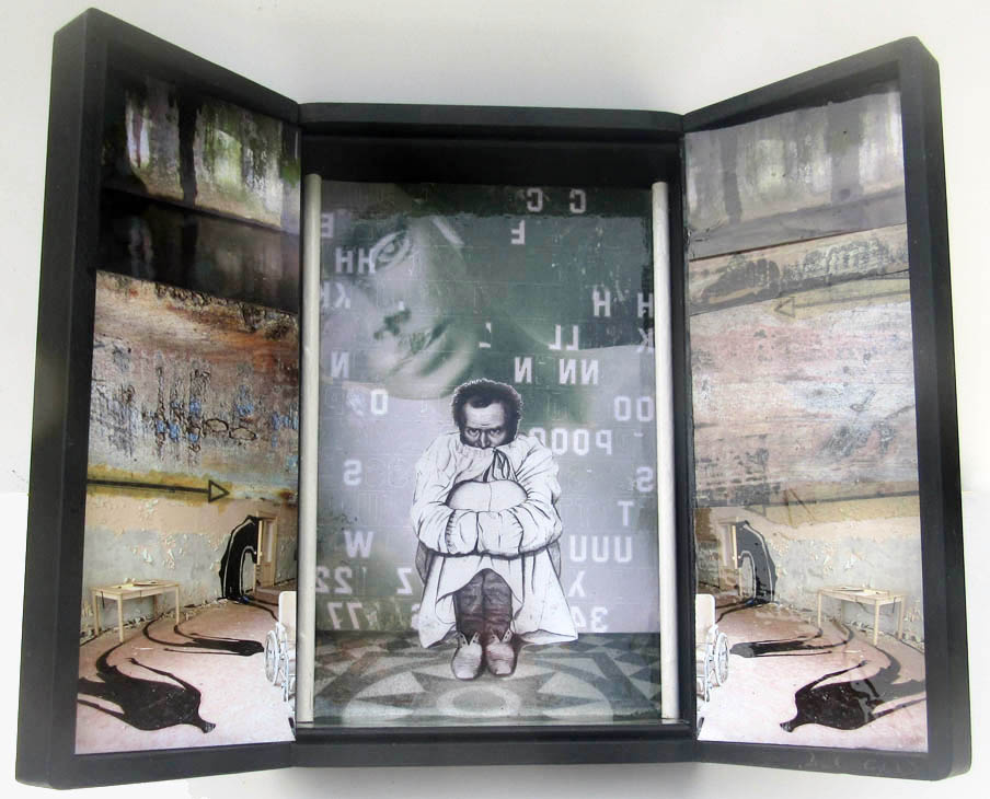 Assemblage of found images in a constructed winged box