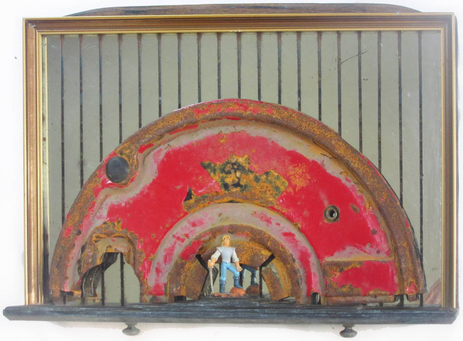 Assemblage of found objects. Mounted on a security mirror.