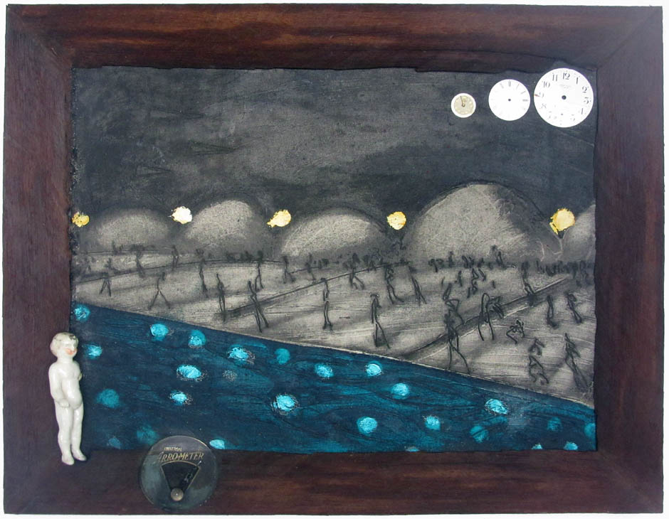 Assemblage of found objects. Mounted on a Roger Morris painting, oil on canvas