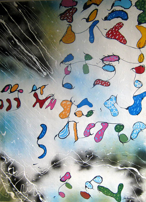 acrylic and enamel paint on stretched canvas