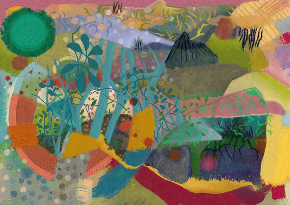 Shapes, patterns, colours, big, small far away, close by - whatever captured my attention. Then I made this artwork overlaying and merging it all together.